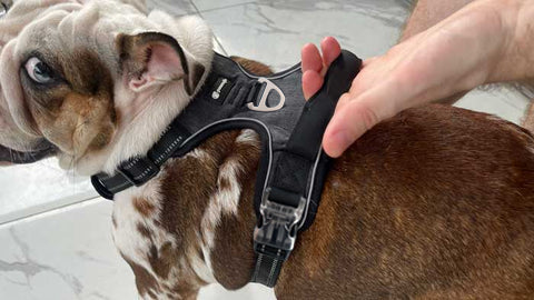 Please refer to our size guide to confirm the correct size, then adjust the straps to your dog’s body for a perfect fit.