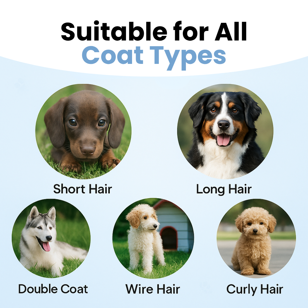 Yes — it’s effective on long and dense coats (e.g., Collies, Golden Retrievers). For very long/silky coats, detangle knots first, then use light strokes to remove undercoat.