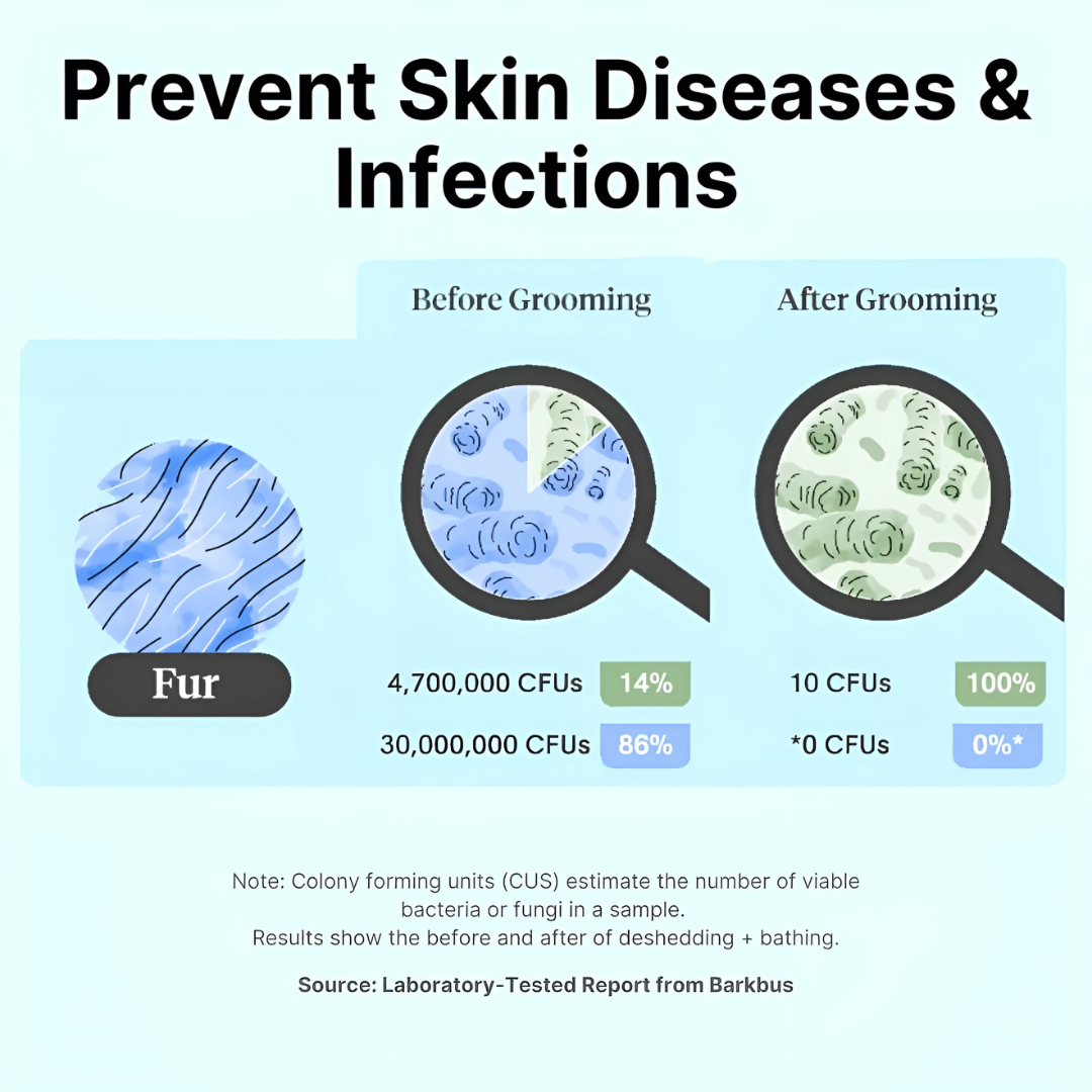 Results reflect before/after deshedding + bathing. Source: Laboratory-Tested Report from Barkbus.