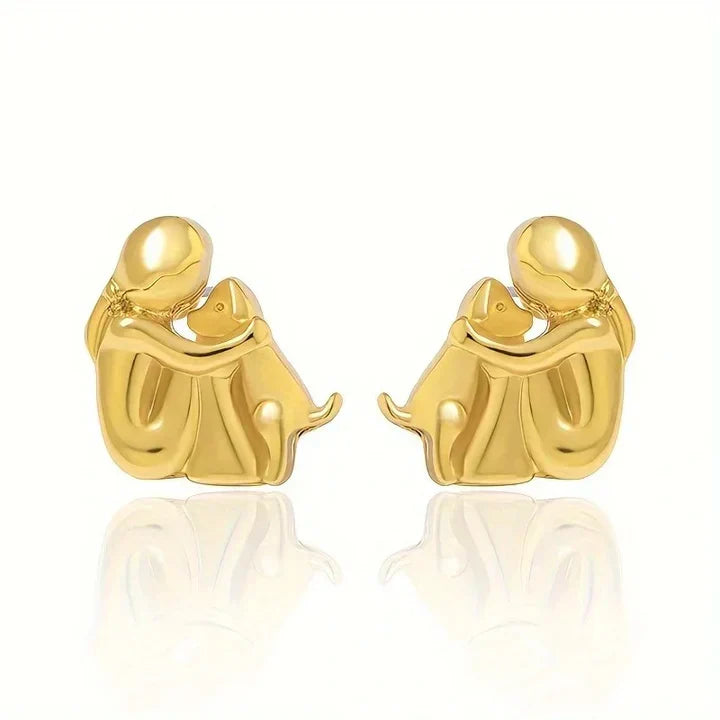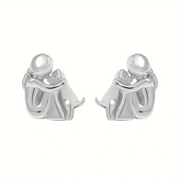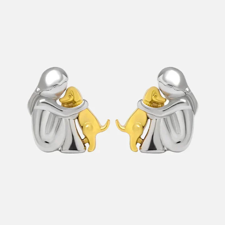 The Morrow earrings Catch one of the most beautiful connections in the world: unconditional love between humans and animals. The delicate motif shows a girl who hugs her loyal dog- a precious moment, captured in a fine Bicolor finish made of silver and gold tones.