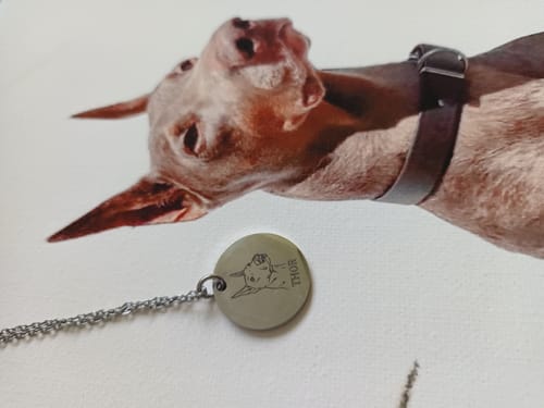 We meticulously etch your personalized illustration onto your very own personalized pet necklace!