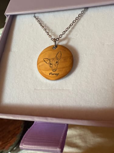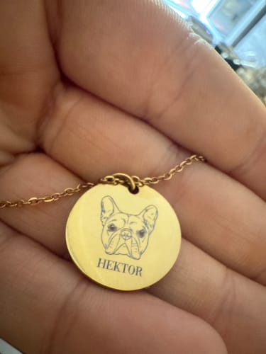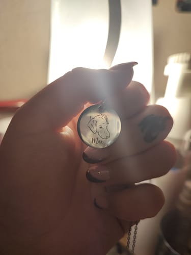 We carefully transform your pet’s photo into a hand-drawn style illustration, then laser engrave it with high precision onto the pendant. The engraving is also filled with ink for sharper contrast and longer-lasting detail.