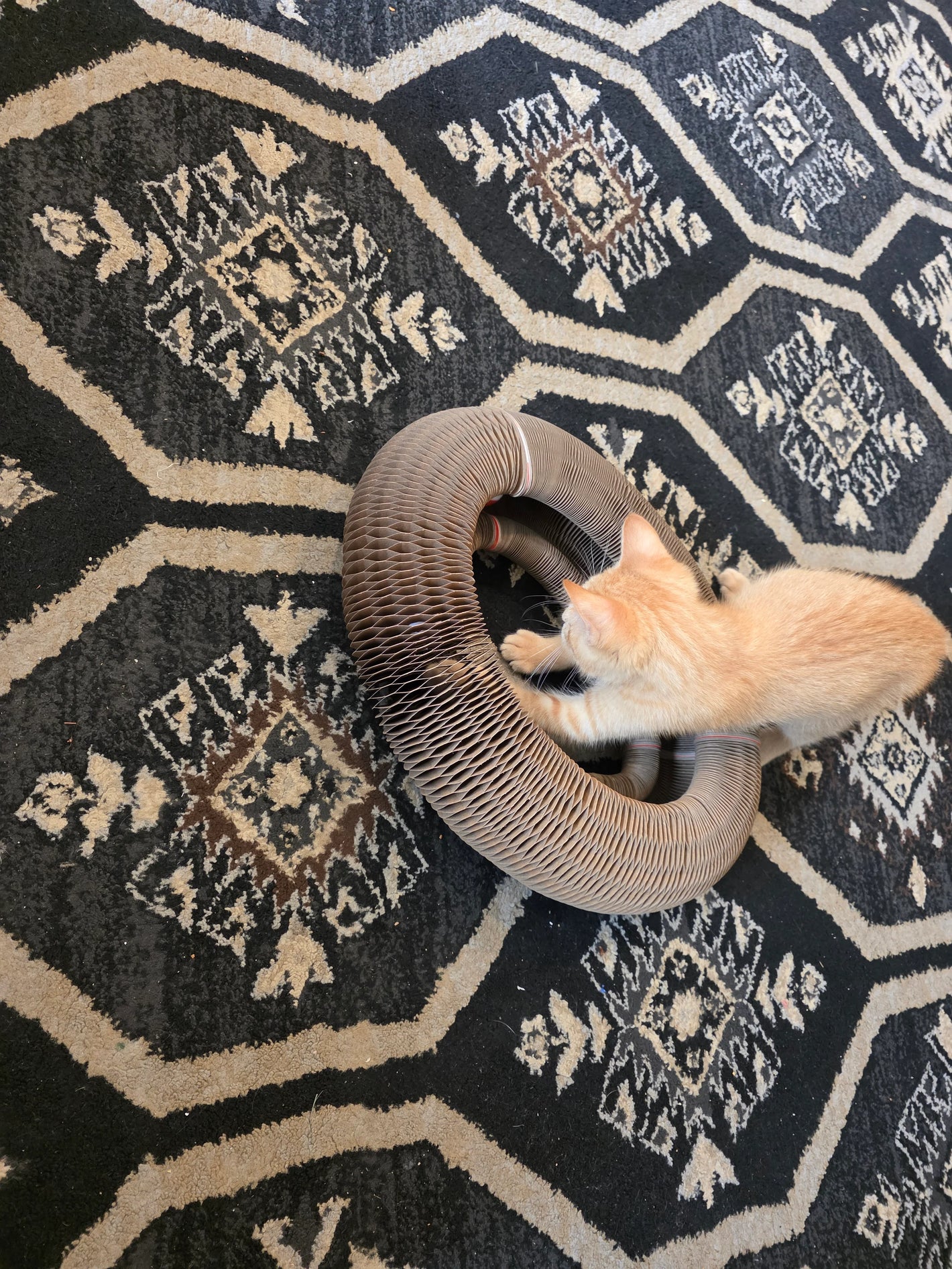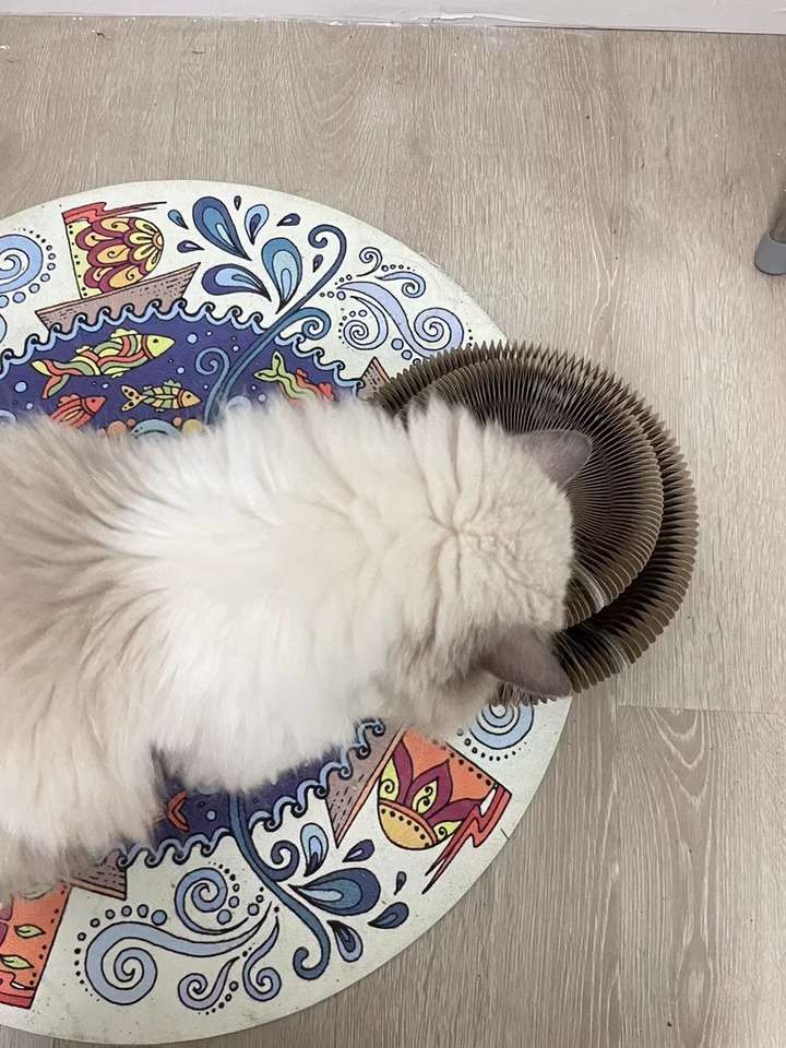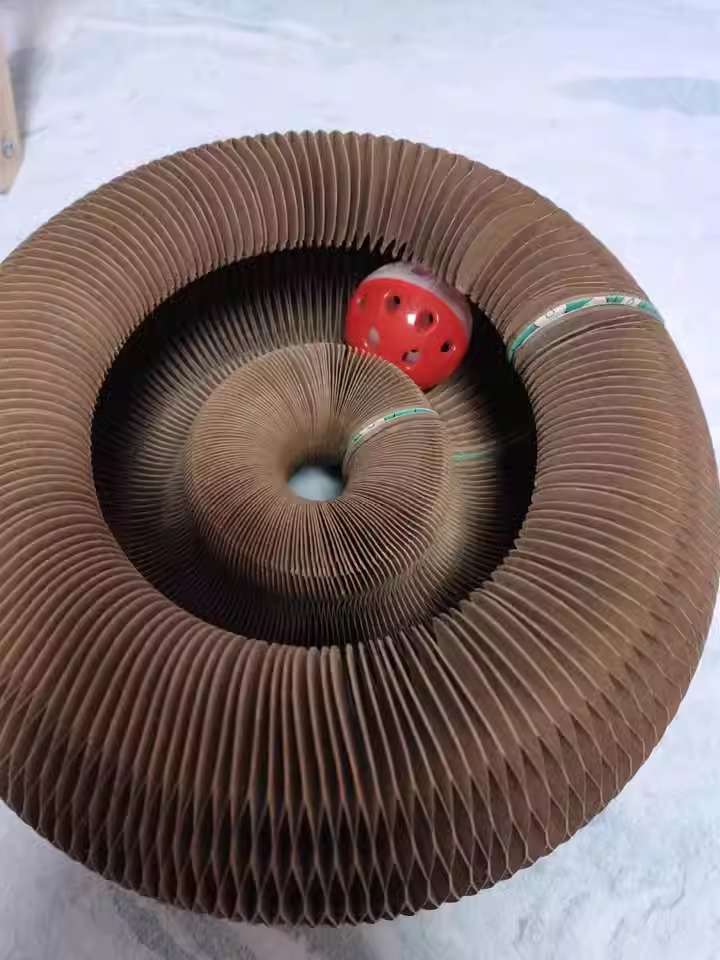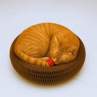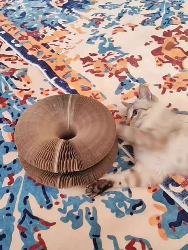Yes. Spiral Furr™ is made from thick, double-layer corrugated cardboard that stands up to scratching, pouncing, and daily tumbles. Its flexible design absorbs impact, making it sturdy even for “destroyer” cats.