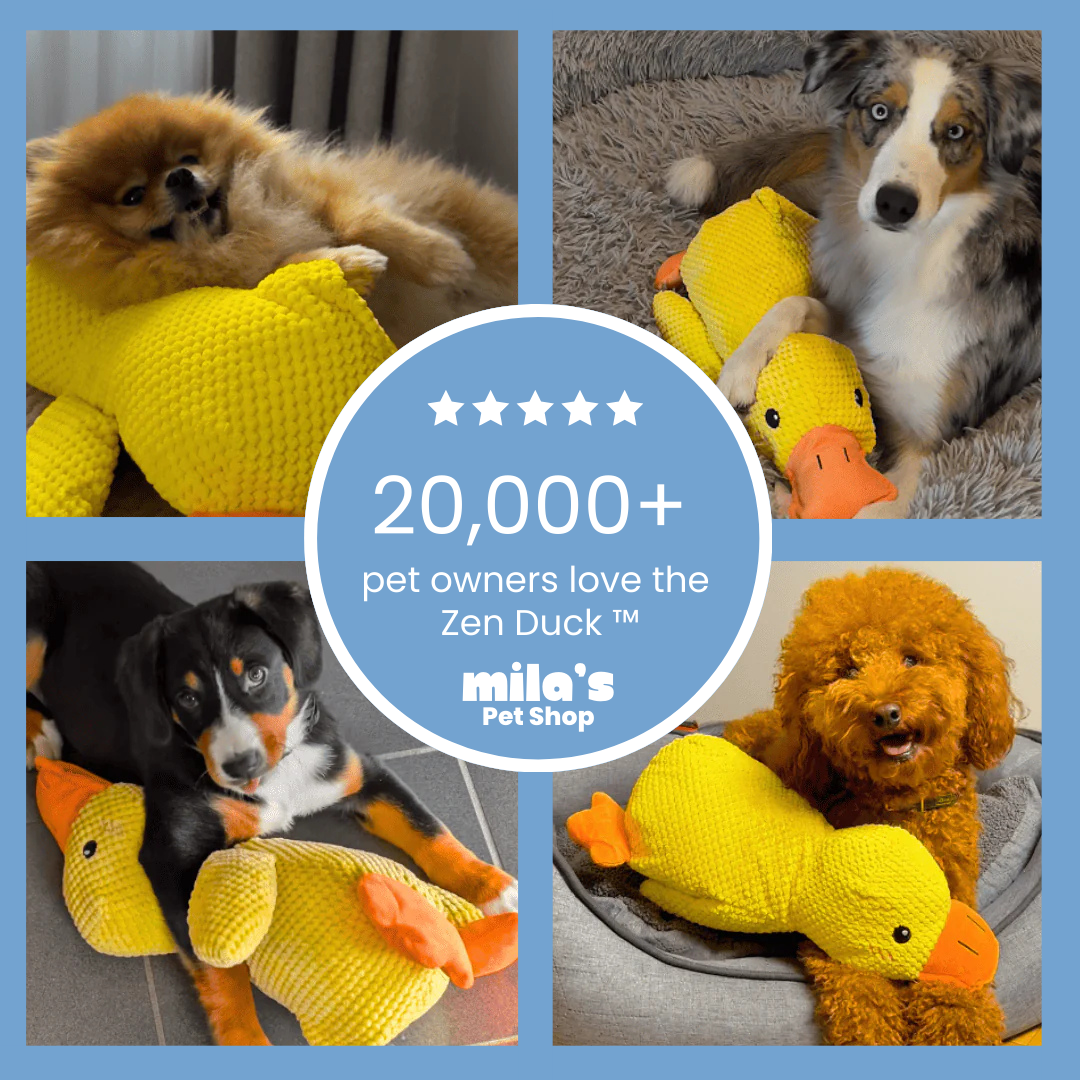 Many customers report that their dogs feel calmer and more relaxed when playing or cuddling with the ZenDuck™. It helps reduce separation anxiety, boredom and excess energy.